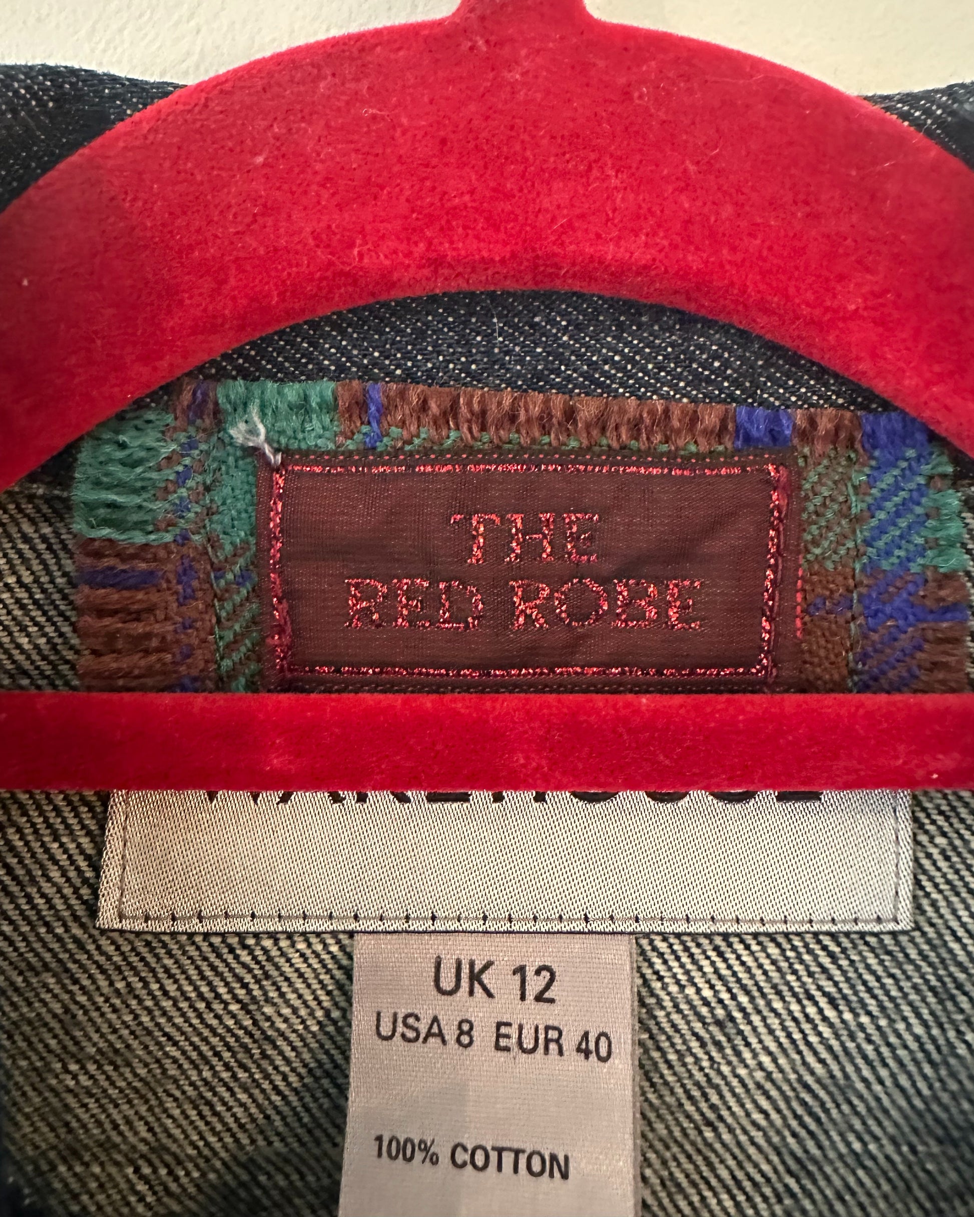 • Thrifted denim jacket upcycled with vintage deadstock cotton (found in Cyprus)