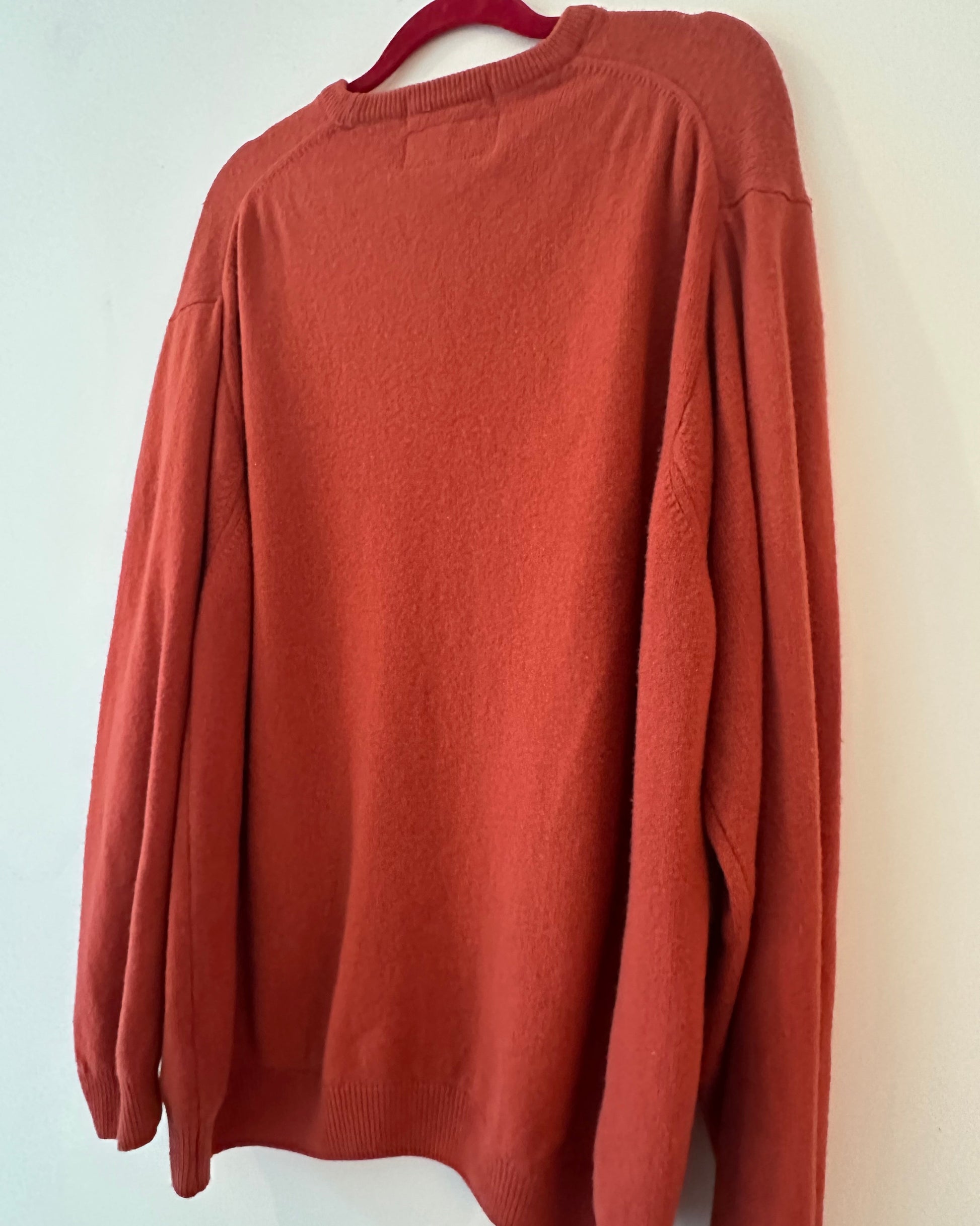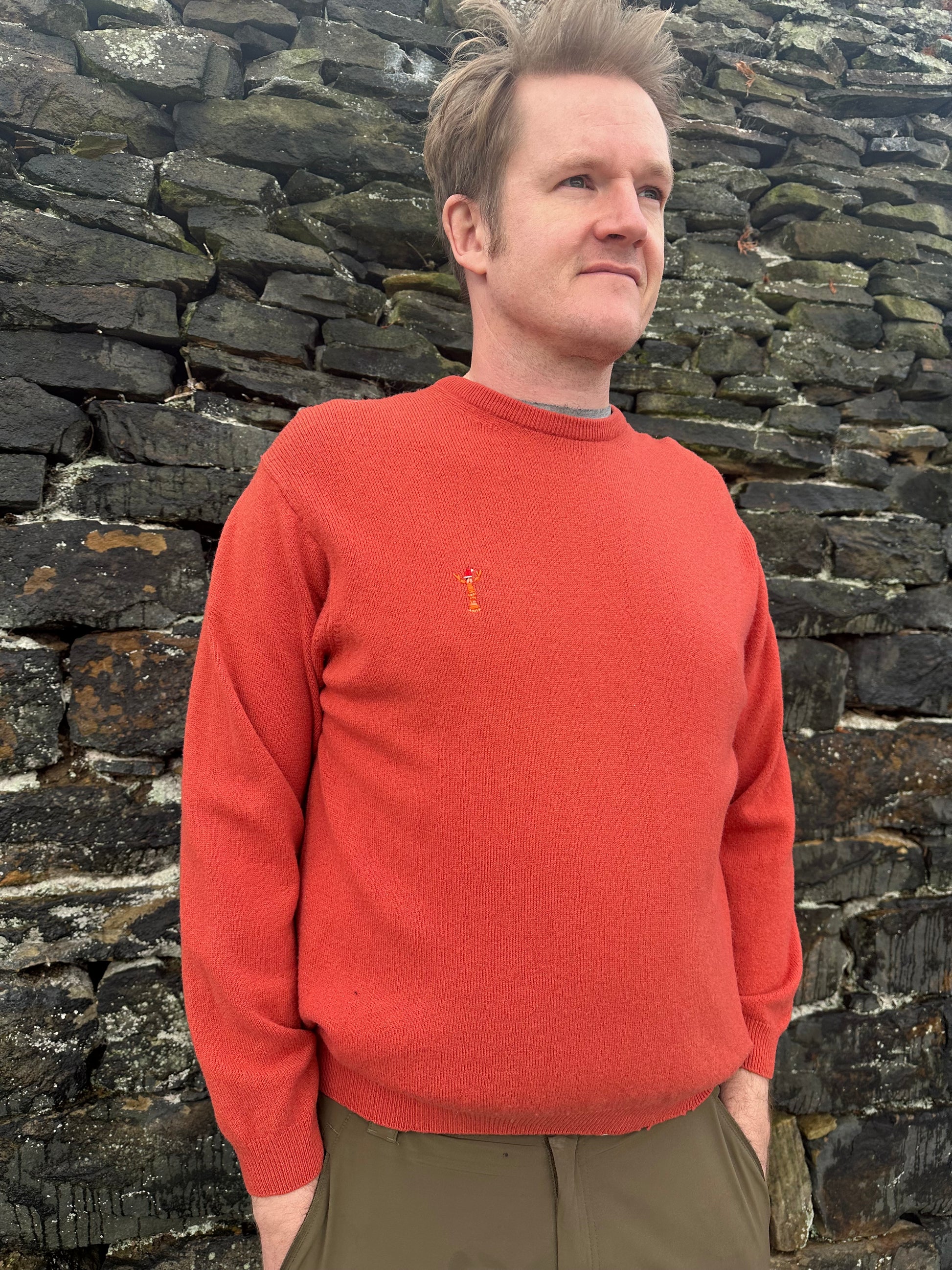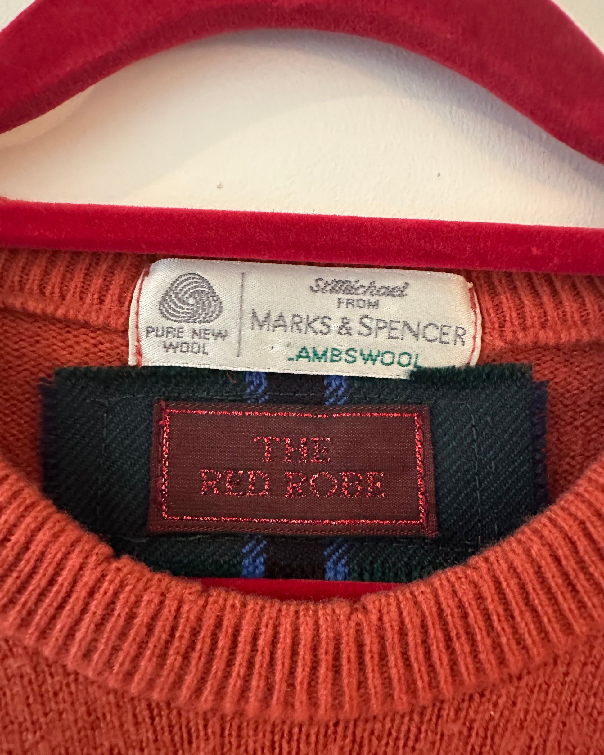 A festive jumper with a side of seafood. This vintage St. Michael lambswool jumper has been reimagined by me with a hand-embroidered Christmas lobster. The jumper itself is pure new wool in a warm coral shade, soft, classic and full of retro charm.